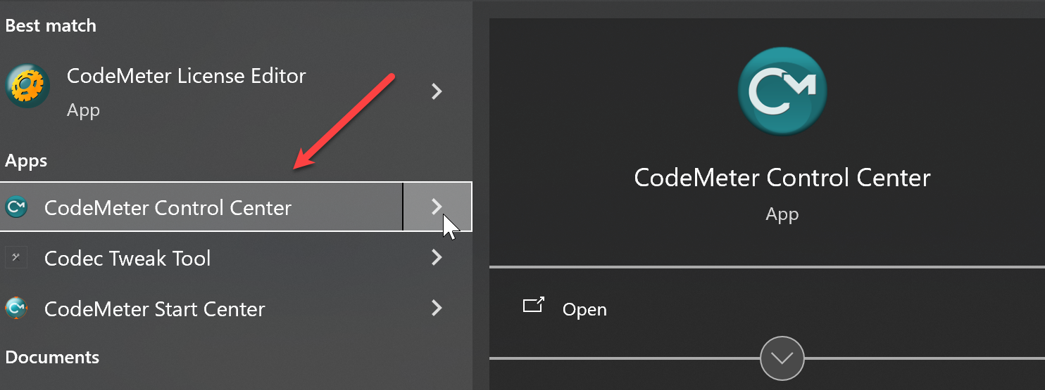 After CodeMeter runtime is installed and launched you’ll be able to see CodeMeter Control Center application in Windows Start menu: